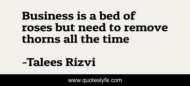 "Talees Rizvi Quotes." Quoteslyfe.com, 2025. Mon. 08 Dec. 2025. <https://www.quoteslyfe.com/quote/Business-is-a-bed-of-roses-but-128278>.