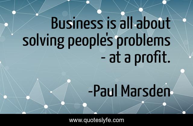 This page presents the quote "Business is all about solving people's problems - at a profit.". Author of this quote is Paul Marsden. This quote is about profit, solving-problems, problem, business,.