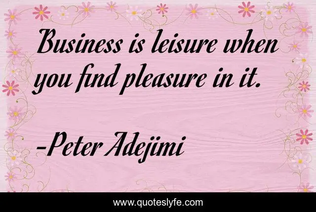 "Peter Adejimi Quotes." Quoteslyfe.com, 2025. Fri. 05 Dec. 2025. <https://www.quoteslyfe.com/quote/Business-is-leisure-when-you-find-pleasure-128988>.