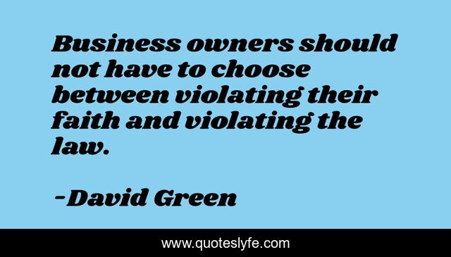 This page presents the quote "Business owners should not have to choose between violating their faith and violating the law.". Author of this quote is David Green. This quote is about law, choose, business,.