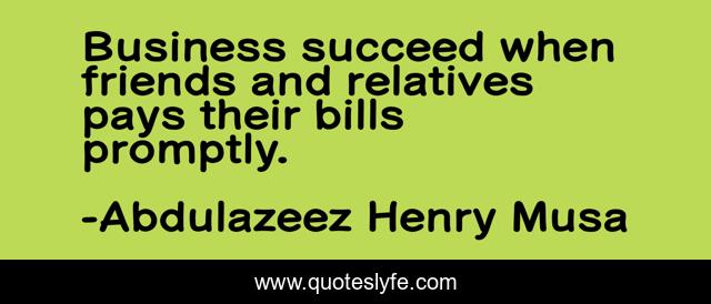 This page presents the quote "Business succeed when friends and relatives pays their bills promptly.". Author of this quote is Abdulazeez Henry Musa. .