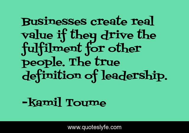 This page presents the quote "Businesses create real value if they drive the fulfilment for other people. The true definition of leadership.". Author of this quote is kamil Toume. This quote is about business-value, leadership,.