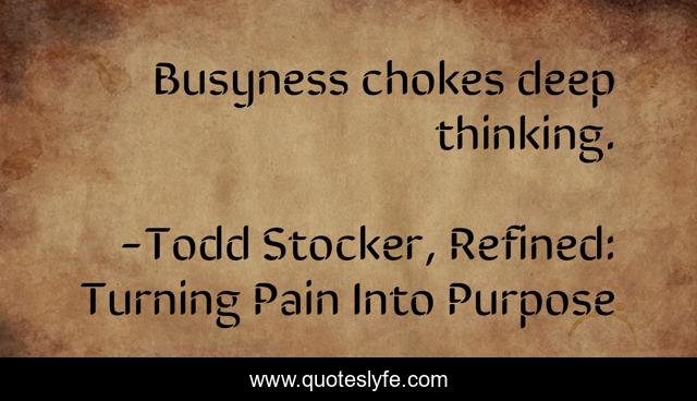 "Todd Stocker, Refined: Turning Pain Into Purpose Quotes." Quoteslyfe.com, 2025. Fri. 05 Dec. 2025. <https://www.quoteslyfe.com/quote/Busyness-chokes-deep-thinking-163151>.