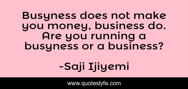 This page presents the quote "Busyness does not make you money, business do. Are you running a busyness or a business?". Author of this quote is Saji Ijiyemi. This quote is about growth, business,.