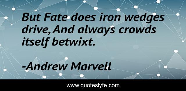 "Andrew Marvell Quotes." Quoteslyfe.com, 2025. Mon. 08 Dec. 2025. <https://www.quoteslyfe.com/quote/But-Fate-does-iron-wedges-drive-And-153629>.