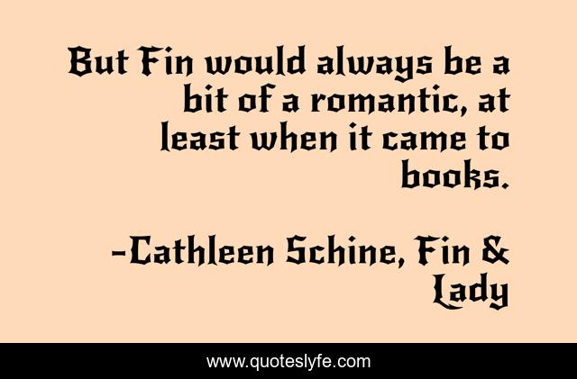 This page presents the quote "But Fin would always be a bit of a romantic, at least when it came to books.". Author of this quote is Cathleen Schine, Fin & Lady. This quote is about fin-and-lady, books, romantic,.