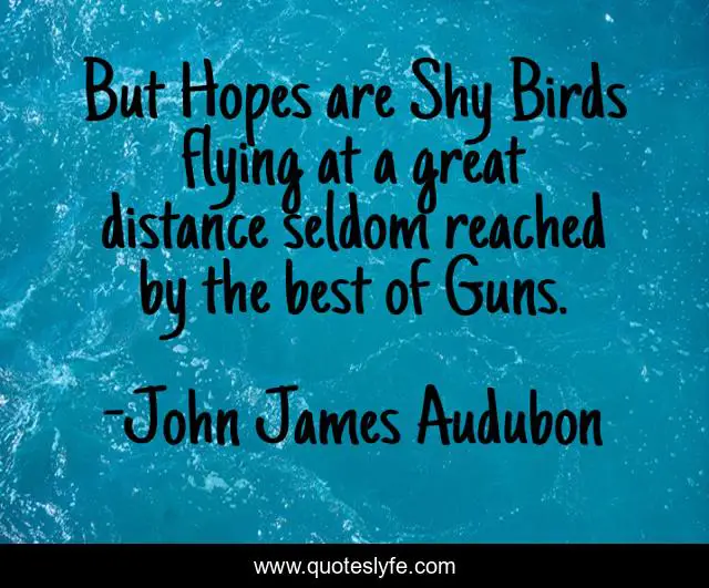 This page presents the quote "But Hopes are Shy Birds flying at a great distance seldom reached by the best of Guns.". Author of this quote is John James Audubon. This quote is about great, birds, best,.