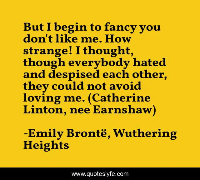 But I begin to fancy you don't like me. How strange! I thought, though everybody hated and despised each other, they could not avoid loving me. (Catherine Linton, nee Earnshaw)