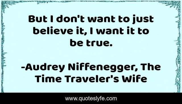 This page presents the quote "But I don't want to just believe it, I want it to be true.". Author of this quote is Audrey Niffenegger, The Time Traveler's Wife. This quote is about god, st-thomas-aquinas, believe, claire-abshire, adolescence,.