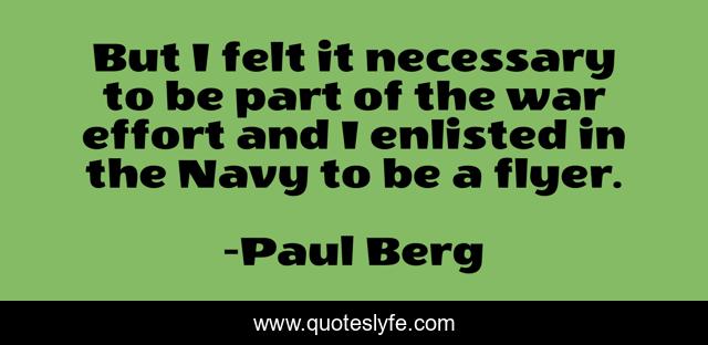 This page presents the quote "But I felt it necessary to be part of the war effort and I enlisted in the Navy to be a flyer.". Author of this quote is Paul Berg. This quote is about navy, part, effort,.