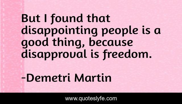 This page presents the quote "But I found that disappointing people is a good thing, because disapproval is freedom.". Author of this quote is Demetri Martin. This quote is about good, a good thing, people,.