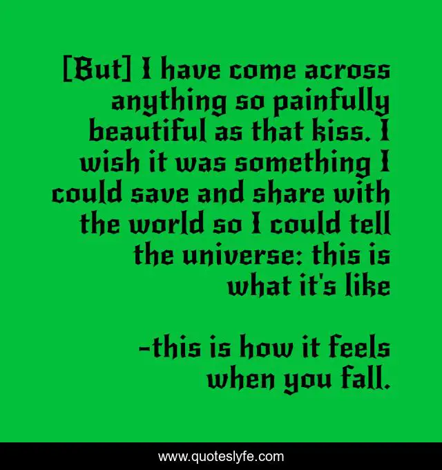 This page presents the quote "[But] I have come across anything so painfully beautiful as that kiss. I wish it was something I could save and share with the world so I could tell the universe: this is what it's like". Author of this quote is this is how it feels when you fall.. This quote is about kiera cass, the one,.