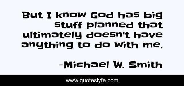 This page presents the quote "But I know God has big stuff planned that ultimately doesn't have anything to do with me.". Author of this quote is Michael W. Smith. This quote is about me, anything,.