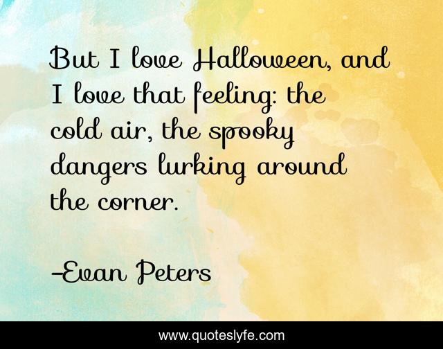 This page presents the quote "But I love Halloween, and I love that feeling: the cold air, the spooky dangers lurking around the corner.". Author of this quote is Evan Peters. This quote is about spooky, feeling, halloween,.