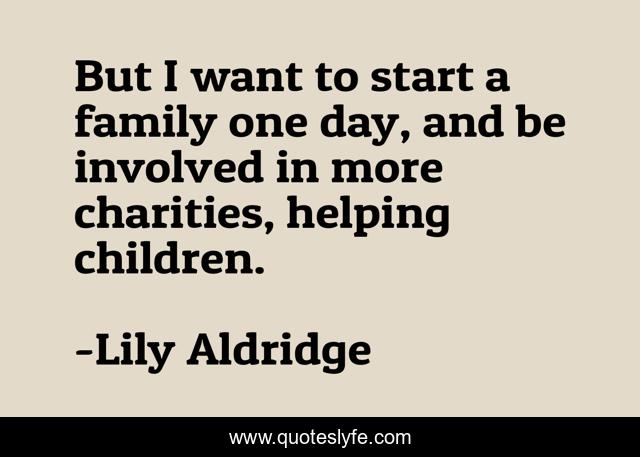 This page presents the quote "But I want to start a family one day, and be involved in more charities, helping children.". Author of this quote is Lily Aldridge. This quote is about start, children, day,.