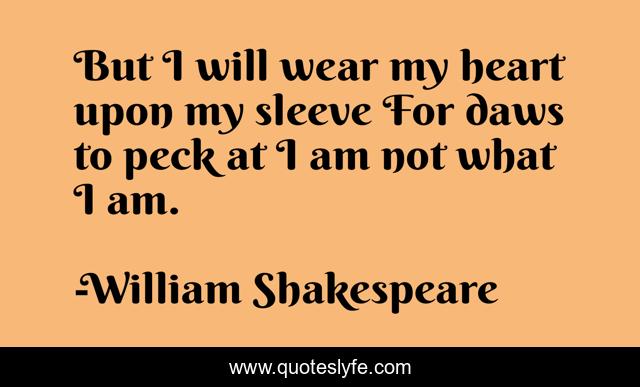 This page presents the quote "But I will wear my heart upon my sleeve For daws to peck at I am not what I am.". Author of this quote is William Shakespeare. .