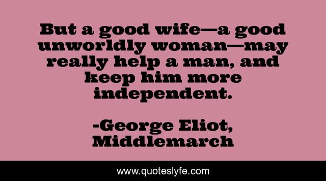 "George Eliot, Middlemarch Quotes." Quoteslyfe.com, 2025. Sat. 06 Dec. 2025. <https://www.quoteslyfe.com/quote/But-a-good-wife-a-good-unworldly-76789>.