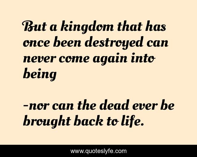 "nor can the dead ever be brought back to life. Quotes." Quoteslyfe.com, 2025. Fri. 05 Dec. 2025. <https://www.quoteslyfe.com/quote/But-a-kingdom-that-has-once-been-21024>.