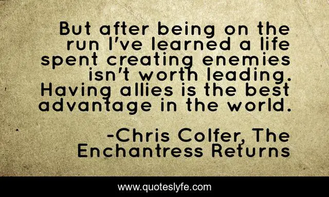 This page presents the quote "But after being on the run I've learned a life spent creating enemies isn't worth leading. Having allies is the best advantage in the world.". Author of this quote is Chris Colfer, The Enchantress Returns. This quote is about goldilocks, fairy-tales,.