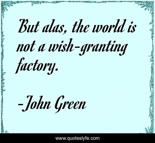 This page presents the quote "But alas, the world is not a wish-granting factory.". Author of this quote is John Green. This quote is about the-fault-in-our-stars, young-adult,.