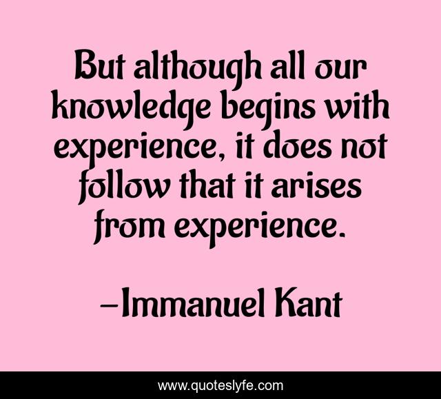 This page presents the quote "But although all our knowledge begins with experience, it does not follow that it arises from experience.". Author of this quote is Immanuel Kant. .