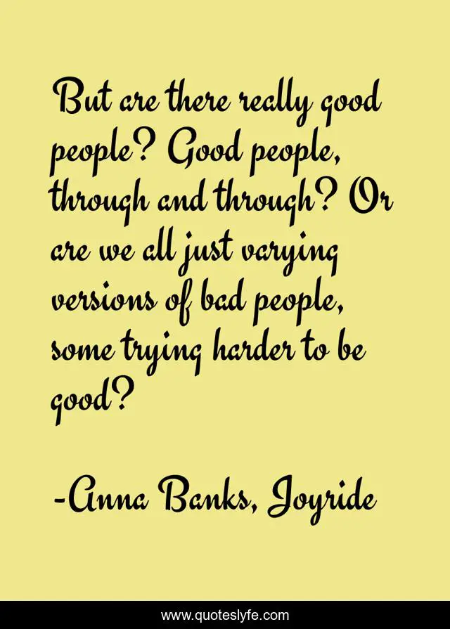 "Anna Banks, Joyride Quotes." Quoteslyfe.com, 2025. Fri. 05 Dec. 2025. <https://www.quoteslyfe.com/quote/But-are-there-really-good-people-Good-177628>.