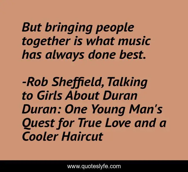 "Rob Sheffield, Talking to Girls About Duran Duran: One Young Man's Quest for True Love and a Cooler Haircut Quotes." Quoteslyfe.com, 2025. Tue. 09 Dec. 2025. <https://www.quoteslyfe.com/quote/But-bringing-people-together-is-what-music-218659>.