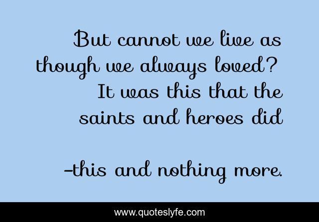This page presents the quote "But cannot we live as though we always loved? It was this that the saints and heroes did". Author of this quote is this and nothing more.. This quote is about maurice maeterlinck, the treasure of the humble,.