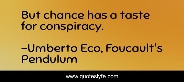 "Umberto Eco, Foucault's Pendulum Quotes." Quoteslyfe.com, 2026. Tue. 13 Jan. 2026. <https://www.quoteslyfe.com/quote/But-chance-has-a-taste-for-conspiracy-252816>.