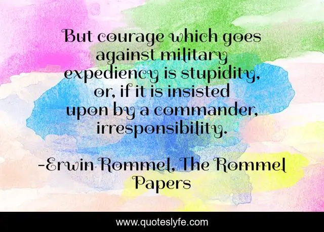 "Erwin Rommel, The Rommel Papers Quotes." Quoteslyfe.com, 2025. Mon. 08 Dec. 2025. <https://www.quoteslyfe.com/quote/But-courage-which-goes-against-military-expediency-233766>.