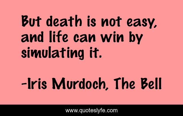 This page presents the quote "But death is not easy, and life can win by simulating it.". Author of this quote is Iris Murdoch, The Bell. This quote is about life, death, life-and-death,.