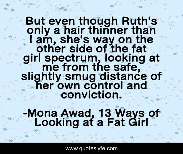 "Mona Awad, 13 Ways of Looking at a Fat Girl Quotes." Quoteslyfe.com, 2025. Fri. 05 Dec. 2025. <https://www.quoteslyfe.com/quote/But-even-though-Ruth-s-only-a-224508>.