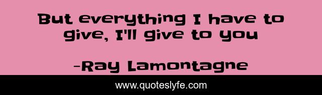 This page presents the quote "But everything I have to give, I'll give to you". Author of this quote is Ray Lamontagne. This quote is about relationships, faith, love, hope, song-lyrics, affection,.