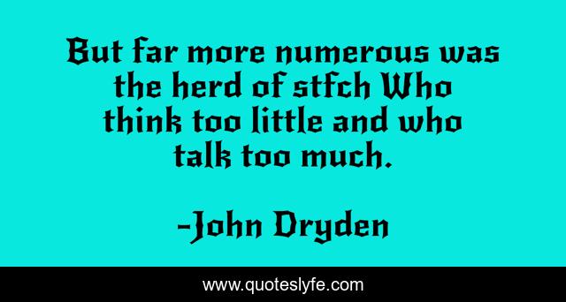 This page presents the quote "But far more numerous was the herd of stfch Who think too little and who talk too much.". Author of this quote is John Dryden. .