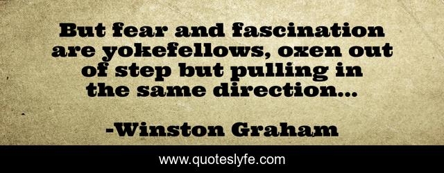This page presents the quote "But fear and fascination are yokefellows, oxen out of step but pulling in the same direction...". Author of this quote is Winston Graham. This quote is about fascination, fear,.