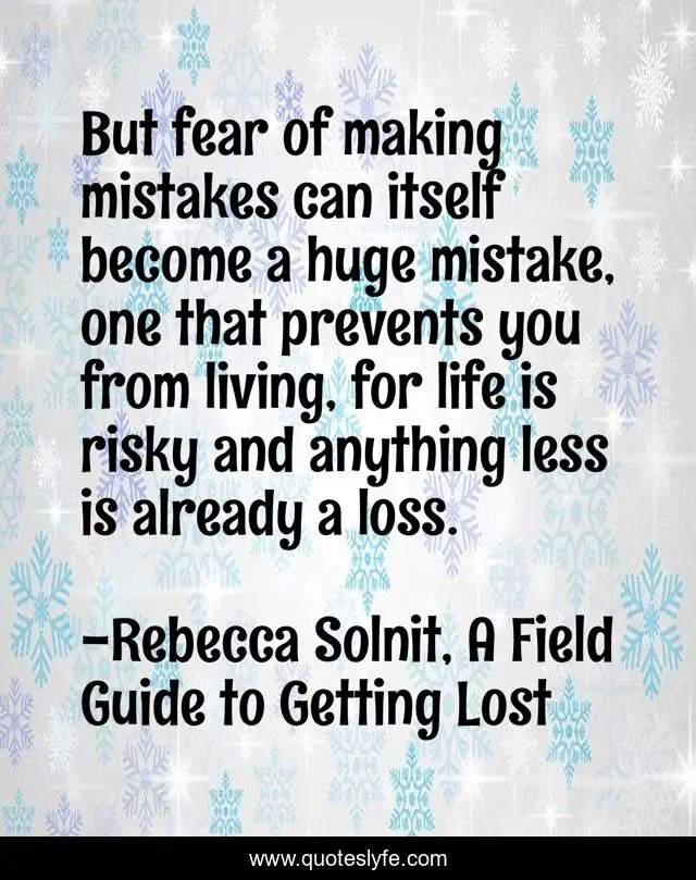 "Rebecca Solnit, A Field Guide to Getting Lost Quotes." Quoteslyfe.com, 2025. Sat. 06 Dec. 2025. <https://www.quoteslyfe.com/quote/But-fear-of-making-mistakes-can-itself-157937>.