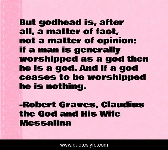"Robert Graves, Claudius the God and His Wife Messalina Quotes." Quoteslyfe.com, 2025. Sun. 07 Dec. 2025. <https://www.quoteslyfe.com/quote/But-godhead-is-after-all-a-matter-193919>.