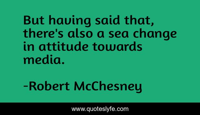 This page presents the quote "But having said that, there's also a sea change in attitude towards media.". Author of this quote is Robert McChesney. This quote is about media, change, sea,.
