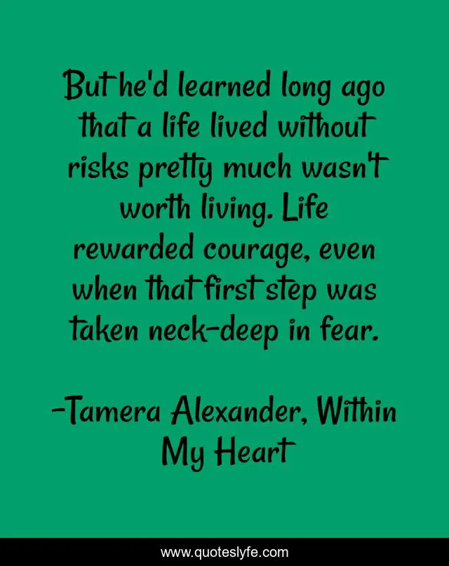 But he'd learned long ago that a life lived without risks pretty much wasn't worth living. Life rewarded courage, even when that first step was taken neck-deep in fear.