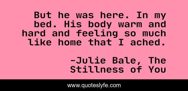 "Julie Bale, The Stillness of You Quotes." Quoteslyfe.com, 2025. Mon. 08 Dec. 2025. <https://www.quoteslyfe.com/quote/But-he-was-here-In-my-bed-232590>.
