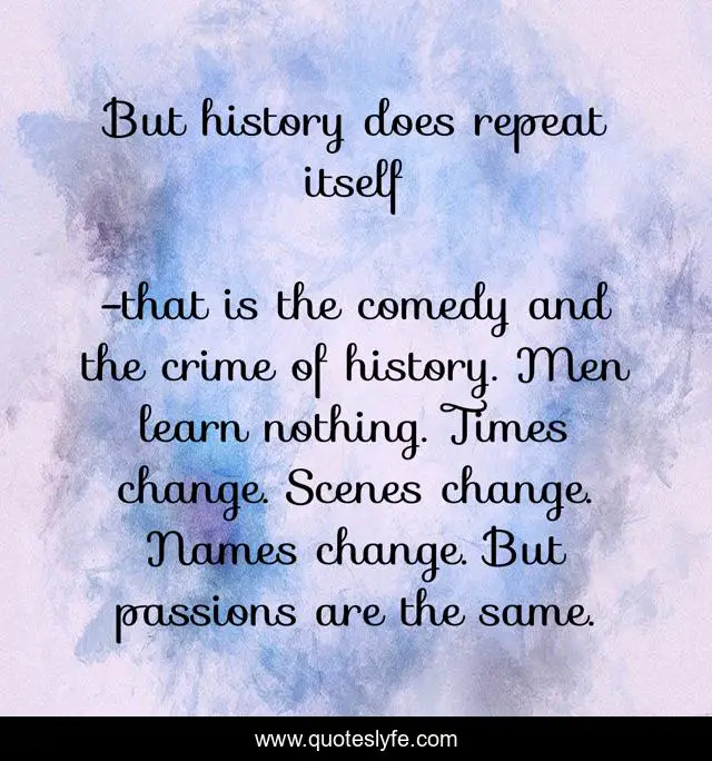 "that is the comedy and the crime of history. Men learn nothing. Times change. Scenes change. Names change. But passions are the same. Quotes." Quoteslyfe.com, 2025. Sat. 06 Dec. 2025. <https://www.quoteslyfe.com/quote/But-history-does-repeat-itself-70822>.