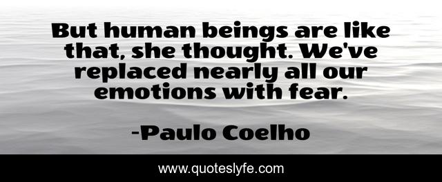 This page presents the quote "But human beings are like that, she thought. We've replaced nearly all our emotions with fear.". Author of this quote is Paulo Coelho. This quote is about fear, emotions, human,.