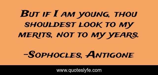 This page presents the quote "But if I am young, thou shouldest look to my merits, not to my years.". Author of this quote is Sophocles, Antigone. This quote is about youth, intelligence, wisdom,.