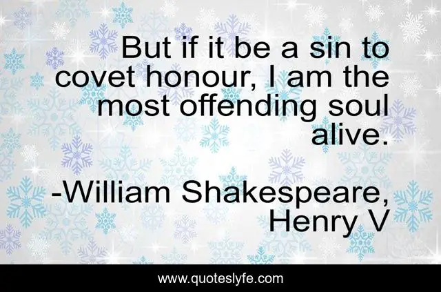 This page presents the quote "But if it be a sin to covet honour, I am the most offending soul alive.". Author of this quote is William Shakespeare, Henry V. .