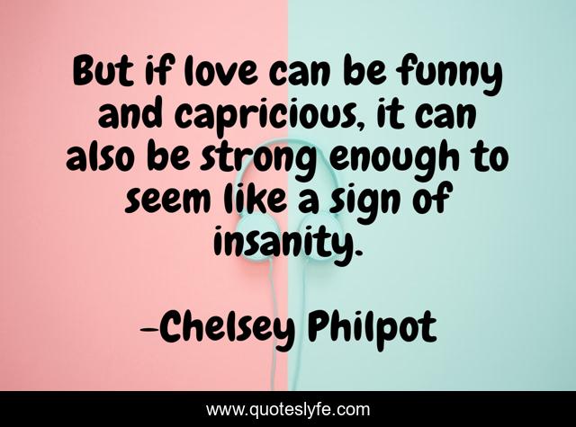 This page presents the quote "But if love can be funny and capricious, it can also be strong enough to seem like a sign of insanity.". Author of this quote is Chelsey Philpot. This quote is about love, affection, insanity,.