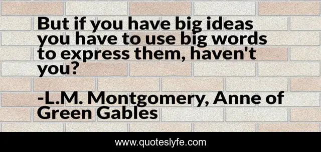 This page presents the quote "But if you have big ideas you have to use big words to express them, haven't you?". Author of this quote is L.M. Montgomery, Anne of Green Gables. This quote is about expression, ideas, words,.