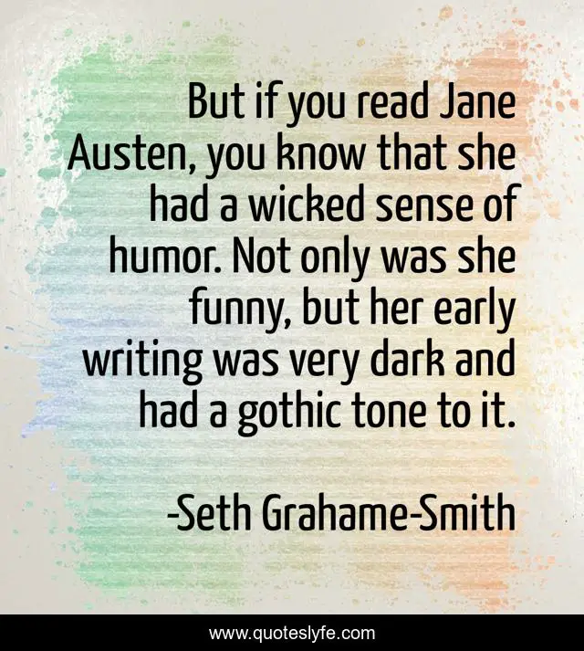 This page presents the quote "But if you read Jane Austen, you know that she had a wicked sense of humor. Not only was she funny, but her early writing was very dark and had a gothic tone to it.". Author of this quote is Seth Grahame-Smith. This quote is about dark, funny, comedy, writing,.