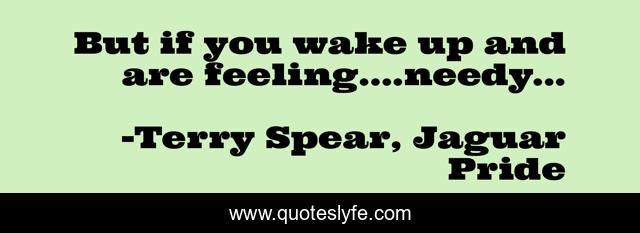 This page presents the quote "But if you wake up and are feeling....needy...". Author of this quote is Terry Spear, Jaguar Pride. This quote is about conservation, paranormal-romance,.