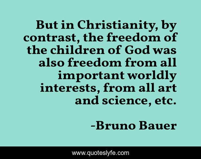 This page presents the quote "But in Christianity, by contrast, the freedom of the children of God was also freedom from all important worldly interests, from all art and science, etc.". Author of this quote is Bruno Bauer. This quote is about freedom, art, children,.