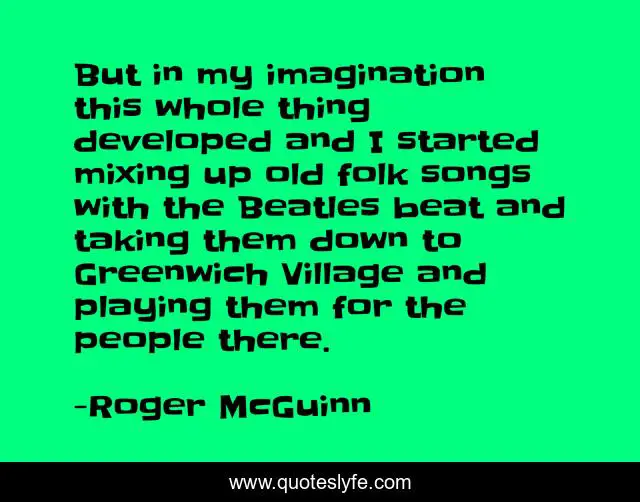 This page presents the quote "But in my imagination this whole thing developed and I started mixing up old folk songs with the Beatles beat and taking them down to Greenwich Village and playing them for the people there.". Author of this quote is Roger McGuinn. This quote is about down, people, village,.